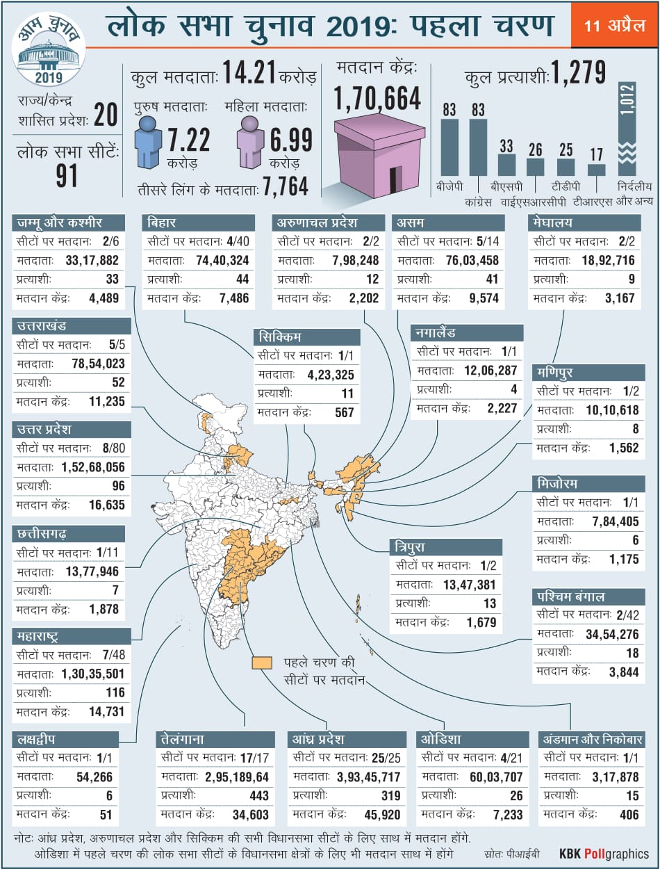 लोकसभा चुनाव 2019 : 91 सीटों पर पहले चरण का मतदान संपन्न, जानिए किस राज्य में हुई कितनी वोटिंग !