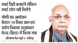 उन्होंने गंगा के प्रदूषण का उदाहरण देते हुए कहा कि जिसके प्रति हम श्रद्धा रखते हैं उसे ही प्रदूषित कर रहे हैं। यदि ऐसे ही चलता रहा तो हम धरती को अपने रहने के लायक नहीं छोंडेगें।पराली के प्रबंधन पर क्रिड द्वारा चिंतन करने के लिए इस संस्था की सराहना करते हुए प्रो. सोलंकी ने कहा कि न्यू इंडिया बनाने में इस संस्था का बडा योगदान रहेगा। उन्होंने कहा कि क्रिड देश और पूरे मानव समाज की चिंता करता है।इससे पहले, नेशनल रेनफैड एरिया अथॉरिटी के पूर्व मुख्य कार्यकारी अधिकारी डॉ. जेएस शर्मा ने गोष्ठी के निष्कर्षों की जानकारी देते हुए कहा कि पराली के प्रबंधन व अन्य कचरे के निपटान द्वारा हम स्मार्ट सिटी की तरह स्मार्ट गांव बना सकते हैं। उन्होंने कहा कि केन्द्र सरकार ने जो नई बायोफिल नीति बनाई है वह इस काम में बडी कारगर रहेगी। इसलिए राज्यों को भी इसके अनुरूप अपनी नीति में बदलाव करने चाहिए।क्रिड के कार्यकारी उपाध्यक्ष डॉ0 रछपाल ने राज्यपाल का स्वागत किया और संस्था का परिचय दिया। इस अवसर पर क्रिड के अध्यक्ष व पंजाब विश्वविद्यालय के पूर्व कुलपति प्रो0 आर. पी. बम्बाह, क्रिड के निदेशक सुनील बंसल, अनेक वैज्ञानिक, पर्यावरणविद आदि उपस्थित थे।