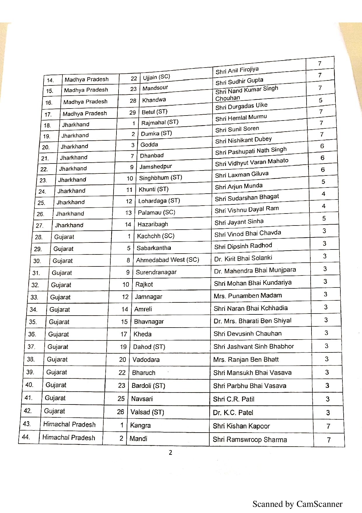 झारखंड के उम्मीदवार : राजमहल से हेमालाल मुर्मू, दुम्का से सुनील सोरेने, गोड्डा से निषिकांत दुबे, धनबाद से पशुपति नाथ सिंह, जमशेदपुर से विद्युत वरूण महतो, सिंहभूम से लक्ष्मण गिलूवा, कुंती से अर्जुन मुंडा, लोहारदगा से सुंदर शाह भागवत, पलामू से विष्णु गया राम, हजारीबाग से जयंत सिन्हा।