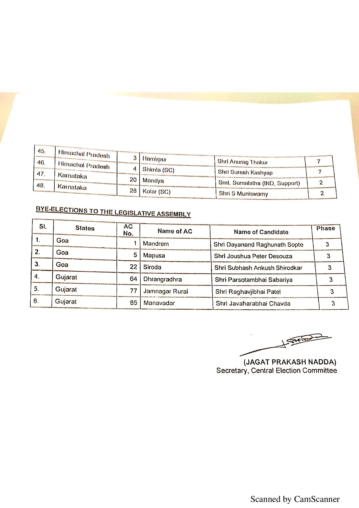 भाजपा ने शनिवार रात में जारी की पांचवी लिस्ट, किया 48 प्रत्याशियों के नामो का एलान !
