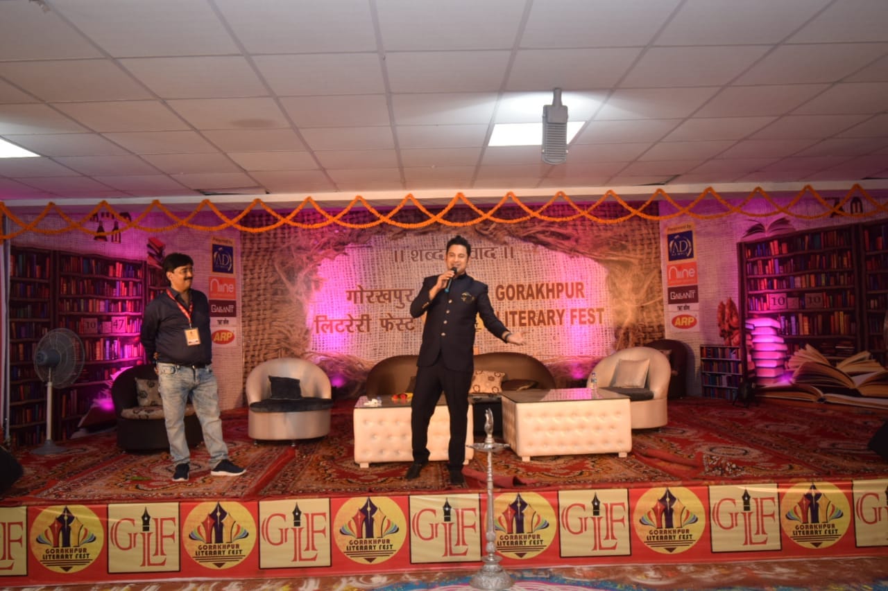 दूसरा सत्र : गुफ़्तगू 'कला साहित्य और संगीत की दुनिया' कला, साहित्य और संगीत हमारे संस्कारों में रहे हैं तथा वैदिक काल से भारतवर्ष ने एक इन क्षेत्रों में संपूर्ण विश्व को मार्गदर्शन देने का कार्य किया है। शब्द ब्रह्म की परिकल्पना भारत के वैदिक साहित्य में ही वर्णित है। एक कलाकार मात्र किसी चरित्र को पर्दे अथवा स्टेज पर जीवंत करने का कार्य नहीं करता बल्कि वह एक साधक होता है। उक्त बातें गोरखपुर लिटरेरी फेस्ट के 'भाषा, साहित्य और संगीत की दुनिया' विषयक गुफ़्तगू में प्रसिद्ध सिने अभिनेता अखिलेंद्र मिश्र ने कहीं। उन्होंने कहा कि कला और मनोरंजन की दुनिया मात्र आभासी दुनिया ना होकर हमारे समाज को सही ढंग से और स्पष्ट प्रतिबिंबित करने की दुनिया है। ऐसे में एक कलाकार, लेखक, प्रस्तुतकर्ता और निर्देशक की भूमिका समाज के लिए बहुत खास होती है। इसी सत्र के दूसरे भाग में बोलते हुए बाहुबली के लेखक तथा सुप्रसिद्ध गीतकार मनोज मुंतशिर में कहा कि कुछ लिखने के लिए सबसे पहले खूब सारा पढ़ना जरूरी है। उन्होंने कहा कि लिखना नहीं बल्कि समझ के आईने में लिखना ज्यादा जरूरी होता है। हमारे चारों ओर हवाओं में गीत बिखरे हैं उन्हें रीक्रिएट करना एक कवि का काम होता है। उन्होंने कहा कि क्योंकि आज का युग डिमांड और सप्लाई का युग है इसलिए गीतों का स्तर थोड़ा घटा है लेकिन आज भी भाव और साहित्य जिंदा हैं। इसके पहले उन्होंने अपने जीवन के तमाम रोचक पहलुओं पर चर्चा करके उपस्थित जनमानस खासतौर पर युवाओं के मन को ख़ूब छुआ। इस सत्र का मॉडरेशन मानवेंद्र त्रिपाठी कथा डॉक्टर रजनी कांत श्रीवास्तव ने किया