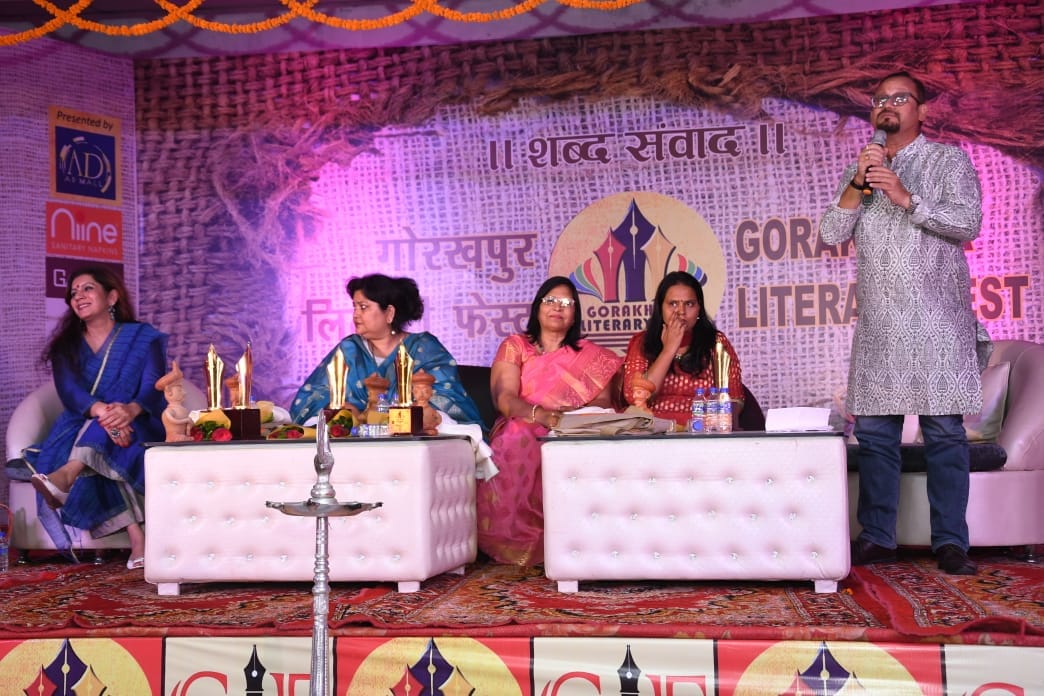तीसरा सत्र : तीसरे सत्र जिसका विषय नाट्य विमर्श: नया क्या लिखा जा रहा है, में वरिष्ठ पत्रकार शिवकेश मिश्र, सुप्रसिद्ध बॉलीवुड अभिनेता विनय पाठक तथा वरिष्ठ पत्रकार राजशेखर ने शिरकत की। विमर्श के क्रम में बोलते हुए विनय पाठक ने कहा कि नाटक शिव के तांडव से निकला है। जिसमें भाव है, स्वर है, ताल है, लय है, छंद है और जीवन का निबंध है। उन्होंने कहा कि नाटक को समृद्ध करने के लिए प्रोत्साहन की आवश्यकता है। यदि अच्छे लेखक और अच्छे दर्शक इस विधा को फिर से पुराना स्नेह दे तो एक बार पुनः यह सशक्त रूप में सामने आएगी। उन्होंने कहा कि अच्छे नाट्यकर्मी को भी पहचाने जाने की जरूरत है। उन्होंने कहा कि आज बॉलीवुड की तमाम प्रसिद्ध हस्तियां जो अभिनय की बारीकियों से दर्शकों को रूबरू करवाती हैं, फिल्मों में आने के पहले थियेटर में तप के निखर पाई हैं। शिवकेश मिश्र ने कहा की कॉमर्शियल दुनिया में नाटक फिट हो सके इसके लिए कुछ सशक्त प्रस्तुतकर्ताओं की आवश्यकता है। उन्होंने कहा कि किताब से अधिक आकर्षण स्टेज का होता है। थिएटर लोगों के अंदर की भावनाओं को झकझोरता है और जब भावनाएं कम हुई है तो थिएटर का थोड़ा नीचे आना अस्वाभाविक नहीं है। कार्यक्रम का मॉडरेशन प्रसिद्ध पत्रकार राजशेखर ने किया शब्द संवाद, गोरखपुर लिटरेरी फेस्ट के दूसरे दिन का चौथा सत्र स्त्री विमर्श के नाम से आयोजित हुआ। मंच पर प्रख्यात गजल गायिका और लेखिका डॉक्टर मालविका हरिओम, वरिष्ठ कहानीकार गीताश्री, मशहूर ब्लॉगर निकिताशा कौर और कवियत्री रंजना जायसवाल, मशहूर लेखिका सोनाली मिश्रा मौजूद थीं। सत्र का संचालन डॉक्टर उत्कर्ष सिन्हा ने किया। चर्चा का धमाकेदार अंदाज गीताश्री ने अपनी आक्रामक शैली में किया। सबसे पहले उन्होंने नारी शब्द के उपयोग पर असहमति जताई और कहा कि इस समाज को अब नारी शब्द से परहेज करना चाहिए क्योंकि नारी अबला होने का संकेत करता है। उन्होंने कहा कि औरत या महिला कहीं अधिक सम्मानित और सशक्त शब्द महसूस होते हैं ।
