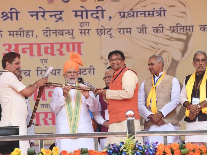 छोटू राम की प्रतिमा का अनावरण किया। एक जनसभा में प्रधानमंत्री ने रेल कोच मरम्मत