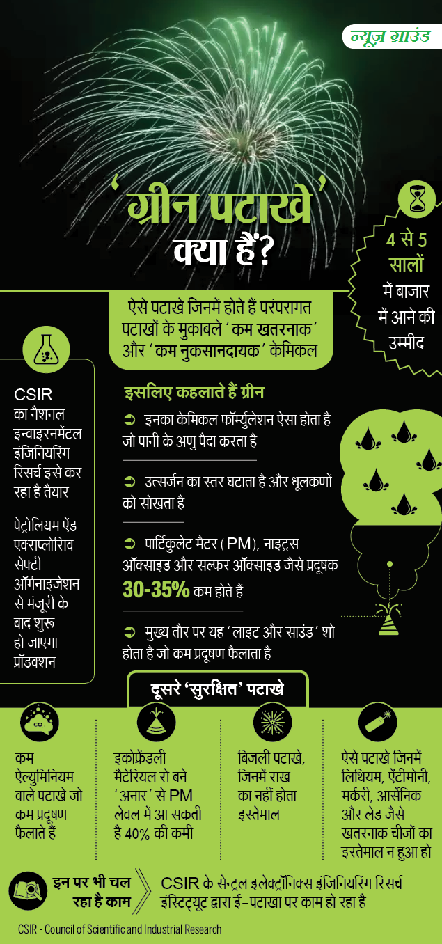 ग्रीन पटाखा तैयार कर लिया गया है. इस पटाखे से करीब 30 प्रतिशत कम प्रदूषण होगा