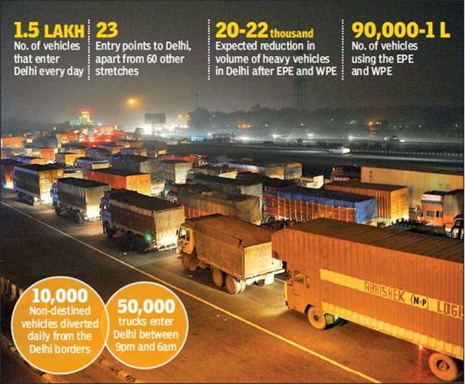 वाले ट्रकों व अन्य कमर्शल वीइकल्स को दिल्ली से होकर जाने की जरूरत नहीं पड़ेगी।
