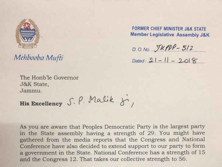 2) महबूबा ने दावा पेश किया : महबूबा ने चिट्ठी में