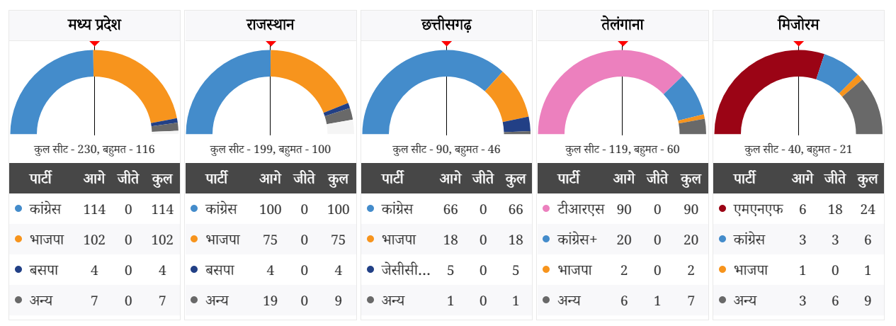 मध्यप्रदेश, राजस्थान, छत्तीसगढ़, तेलंगाना और मिजोरम विधानसभा चुनाव के परिणाम देश की सियासत