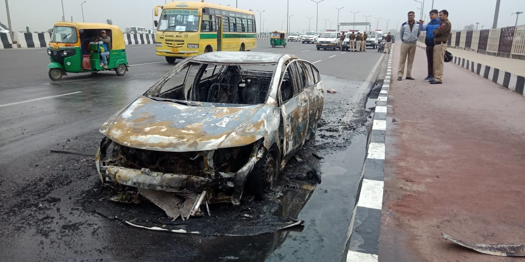 पूर्वी दिल्ली के अक्षरधाम मंदिर के पास चलती कार में अचानक से आग लग गई. ये वाक्य बुधवार 11:30 बजे के आसपास का है सुझभुज दिखाते हुए कार चालक तुरंत कार से उतर गए.और दमकल विभाग को सूचना दी गई. जब तक दमकल विभाग मौके पर पहुँचे तब तक कार जल कर खाख हो चुकी थी. सूत्रों के अनुसार शुरुवाती जांच में पता चला है कि आग लगने का कारण शार्ट सर्किट बताया जा रहा है. कार में CNG भी लगी हुई थी. कार चालक अमित अपनी हौंडा सिटी कार से कॉलेज जा रहे थे.पुलिस जांच में जुटी।
