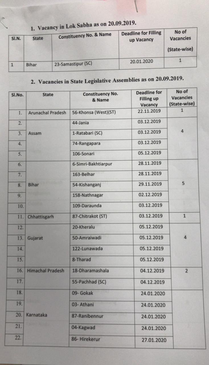 महाराष्ट्र और हरियाणा के साथ ही कुछ अन्य राज्यों की 64 सीटों पर उपचुनाव भी होना है. चुनाव आयोग की ओर से इनकी तारीखों का ऐलान भी किया गया है.