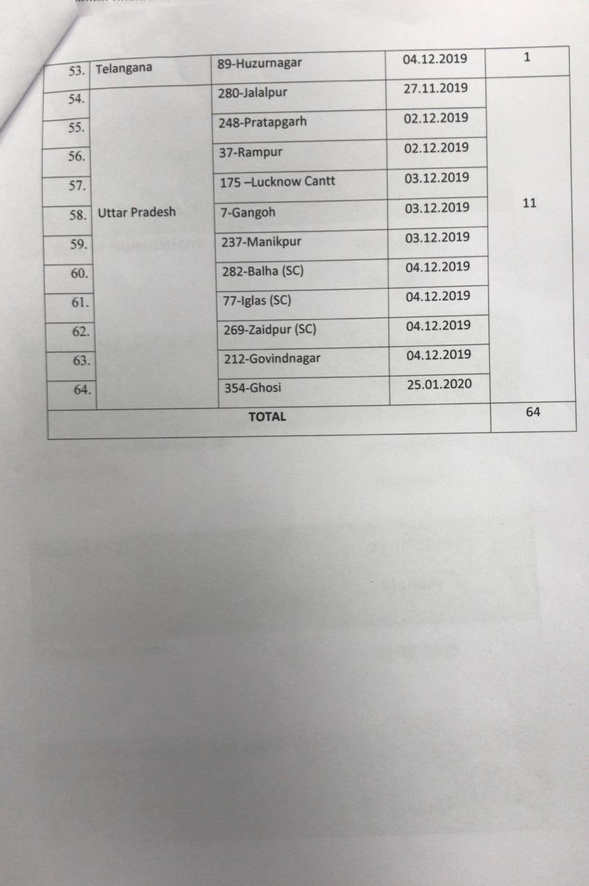 नामांकन वापसी की तारीख – 7 अक्टूबर