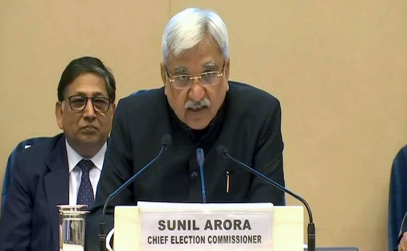 - मुख्य चुनाव आयुक्त सुनील अरोड़ा, चुनाव आयुक्त अशोक लवासा और सुशील चंद्रा प्रेस कॉन्फ्रेंस कर रहे हैं.
