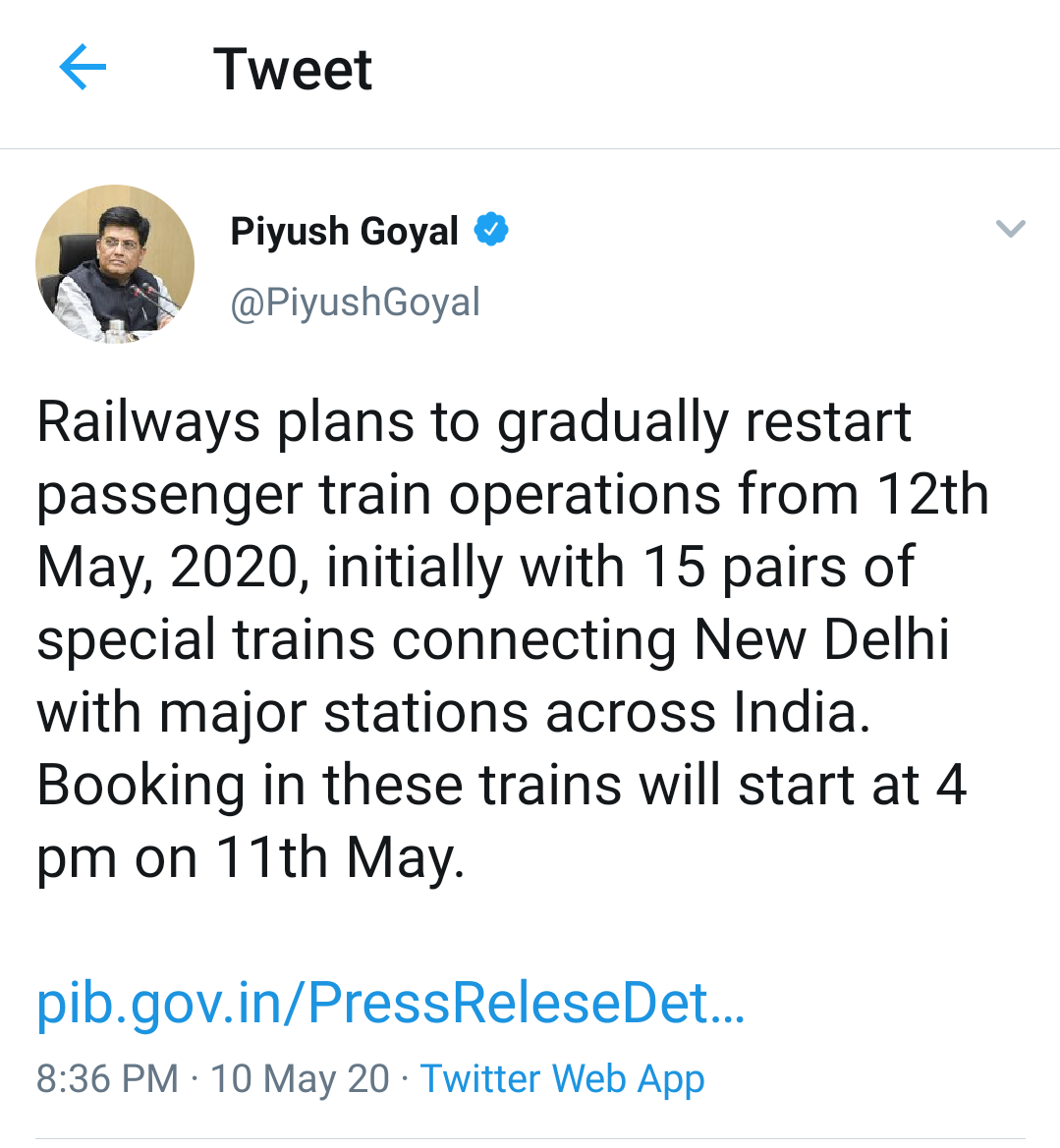 Indian Railway : 12 मई को दिल्ली से 15 शहरों के लिए चलाई जाएगी ट्रेनें, आज से IRCTC पर बुकिंग शुरू !