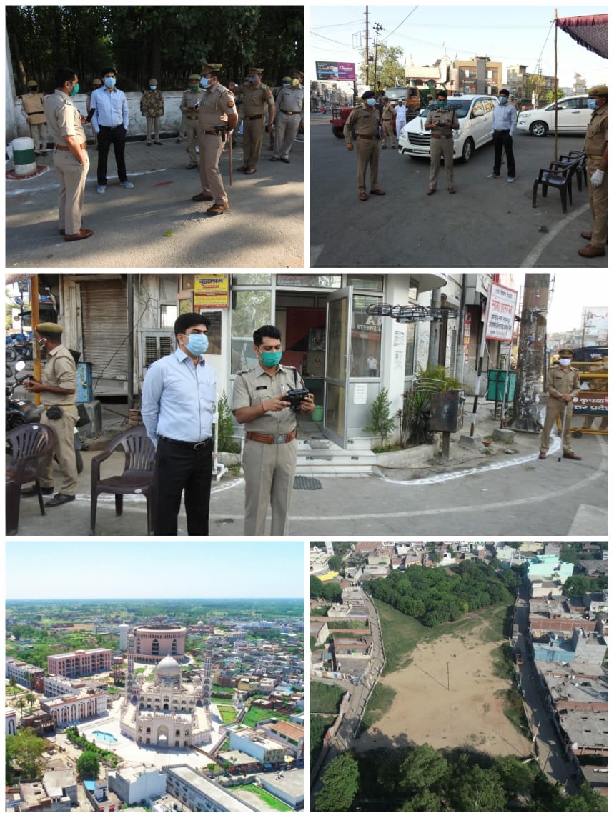 सहारनपुर,यू.पी (न्यूज़ ग्राउंड) अंकित कुमार : ईद की नमाज व ईद के पर्व के दृष्टिगत डीम अखिलेश सिंह, एसएसपी दिनेश कुमार पी. ने जनपद क्षेत्र का भृमण किया, पुलिस कर्मचारीगण द्वारा क्षेत्र में लगातार भ्रमणशील रहकर लोगों को घरो में ईद की नमाज व ईद मनाने एवं लॉक डाउन के नियमों का पालन करने के संबंध में सज़ग किया गया, जिलाधिकारी सहारनपुर व वरिष्ठ पुलिस अधीक्षक सहारनपुर द्वारा स्वयं ड्रोन कैमरे से भी क्षेत्रों की व्यवस्थाओं का जायजा लेते हुए संबंधित को आवश्यक दिशा-निर्देश दिए गए, थाना देवबंद क्षेत्र नगर में पुलिस द्वारा ईद की नमाज़ घरो में अदा करें इसके लिये नगर में चाक चौबंद व्यवस्था की गई थी, सुरक्षा की दृष्टि से देवबन्द में लगातार ड्रोन कैमरे से नजर रखी गयी, जनपद में सभी ईदगाह खाली नजर आये, मुस्लिम समाज ने किया लोक डाउन का पालन, घरों में रहकर नमाज की गयीअदा!!
