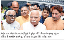 इजराइल व यूनाइटेड किंगडम की सात दिवसीय सरकारी यात्रा के उपरांत स्वदेश लौटने पर इंदिरा गांधी अंतरराष्ट्रीय हवाई अड्डे पर मीडिया से बातचीत करते हुए हरियाणा के मुख्यमंत्री मनोहर लाल ने कहा कि उद्योग तथा व्यापार-व्यवसाय के विकास की दिशा में हरियाणा सरकार द्वारा किए गए नीतिगत परिवर्तनों के परिणाम स्वरूप वर्तमान में विदेशी निवेशकों में हरियाणा में निवेश के लिए अति उत्साहित हैं।